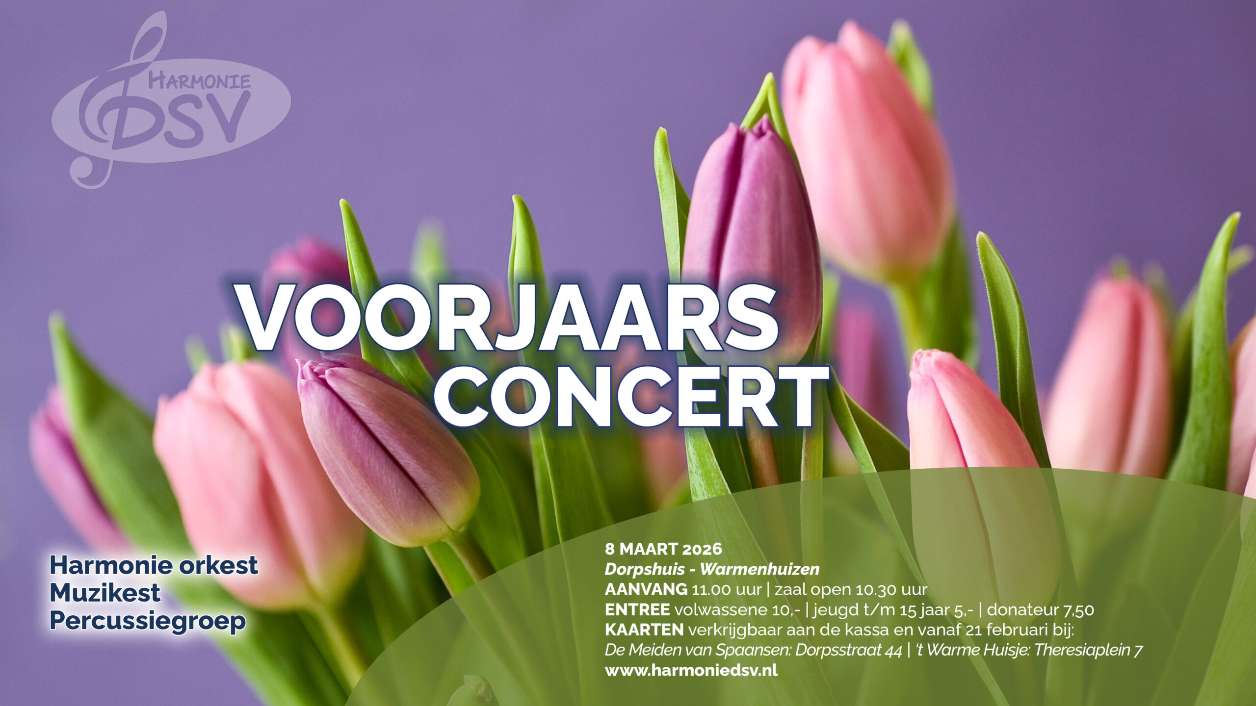 Het voorjaarsconcert van Harmonie DSV op 8 maart in het Dorpshuis van Warmenhuizen was een groot succes. Voor een enthousiast publiek speelden het harmonieorkest, Muzikest en de percussiegroep een gevarieerd programma met prachtige muziekstukken. De muzikanten lieten zich van hun beste kant zien en zorgden voor een sfeervolle en geslaagde ochtend.
